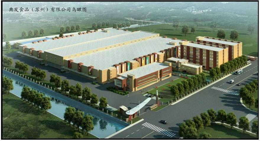 2012 年,新工厂坐落在江苏省苏州市汾湖高新技术产业开发区食品产业园,占地100 亩,总投资9980 万美元,拥有员工约700 人,拥有24 条现代化速冻生产线,3000 多吨低温冷冻库,年生产能力10 万吨。产品有千页牌豆腐,典发牌麻糬棒、元宝烧、极面、素馅火腿等五个系列。