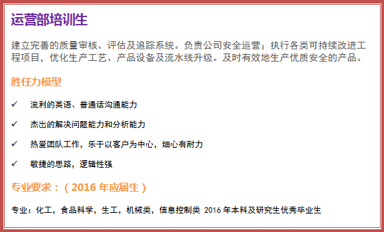 由资深的管理人员作为职业生涯的导师,一起分享他们宝贵的经验并为培训生指引个人发展道路,由人力资源定期分析评估绩效及个人发展方向,由公司管理层直接给予指导的项目参与,强大的辅导团队能够保证培训生快速、健康的发展。