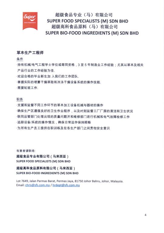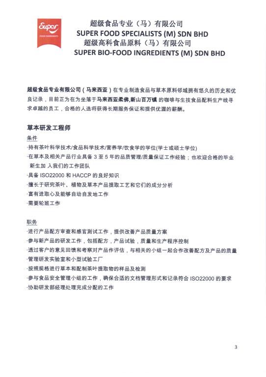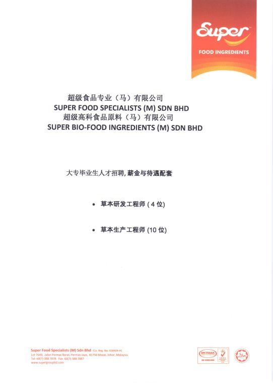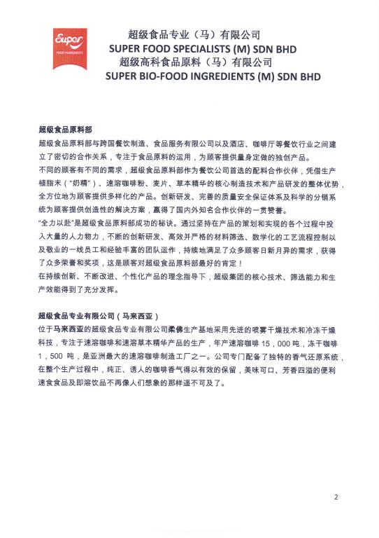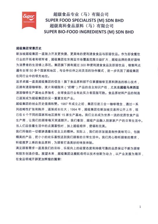 超级食品专业(马)有限公司、超级高科食品原料(马)有限公司